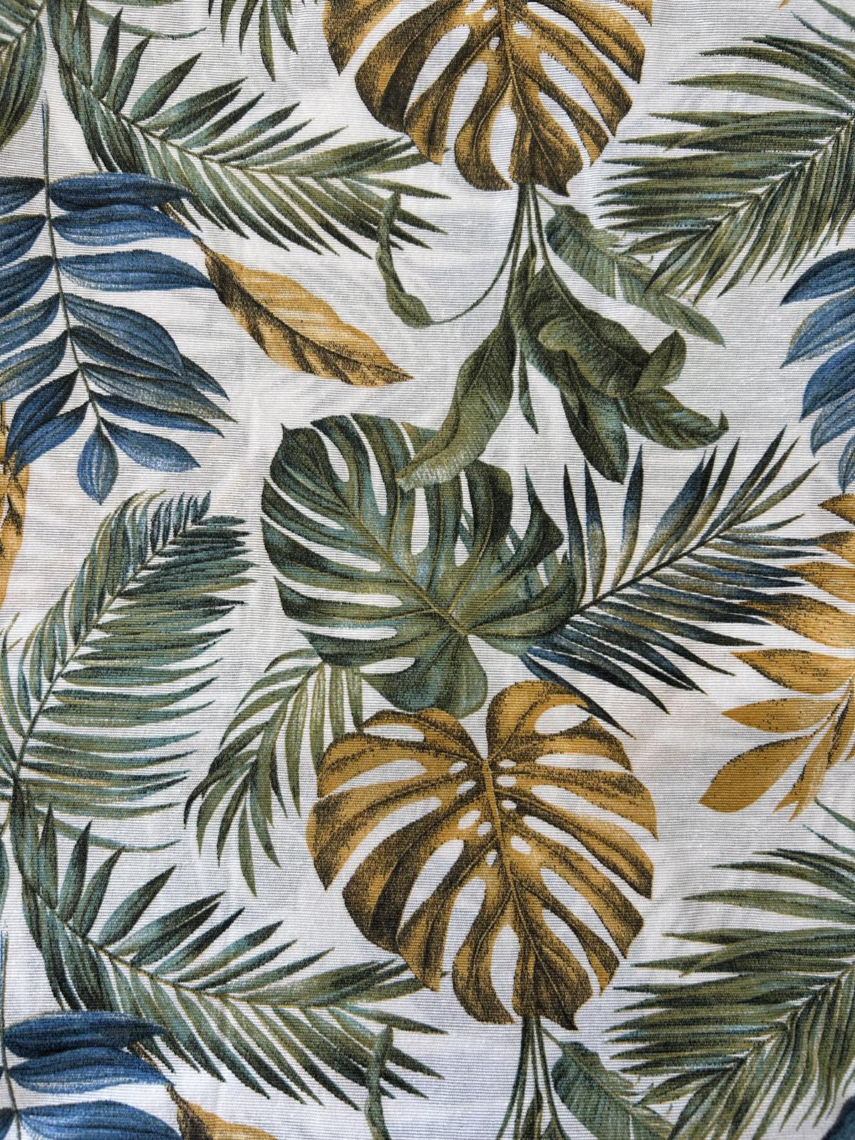 Tela algodón hojas mostazas y azules