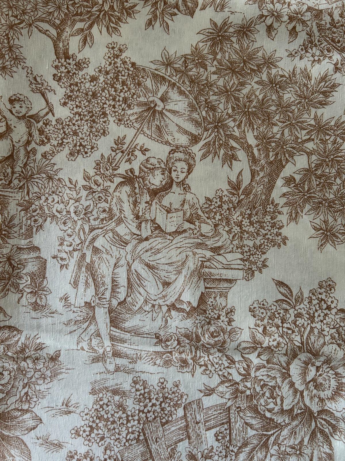 / Tela algodón marrón Toile de Jouy