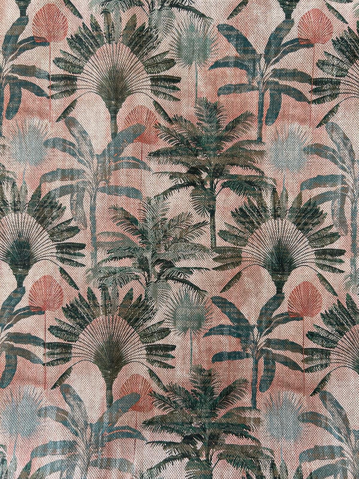 Tela resinada salmón palmeras verdes